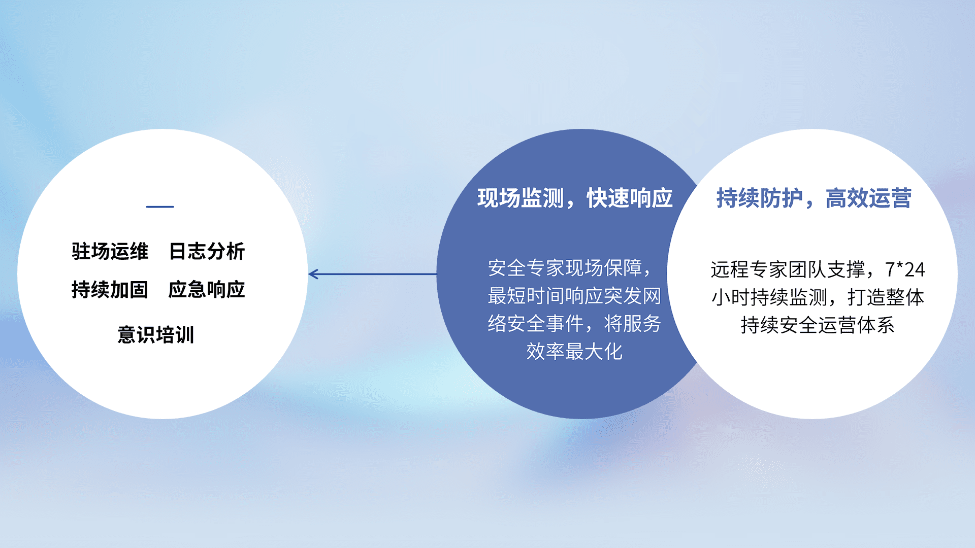 7X24小时持续监测安全事件,保持安全策略有效性,降低资产脆弱性风险,,,精准拦截黑客攻击,,减少被黑客利用的机会,,,第一时间遏制,,,降低损失。。。
